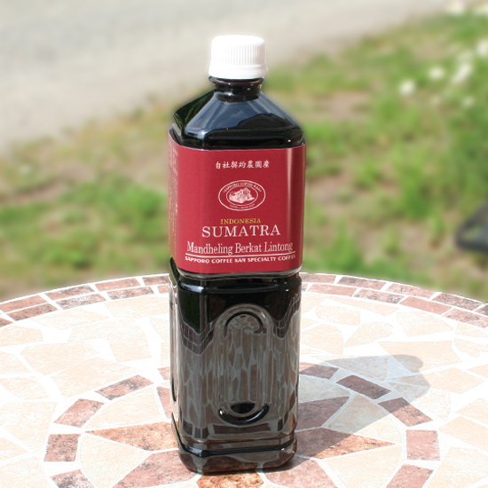 北海道京極町の「羊蹄山」のふきだしの湧水。 を使用し契約農園産マンデリンを ネルドリップした濃厚な味わいのボトルコーヒー。 1本からの販売です。