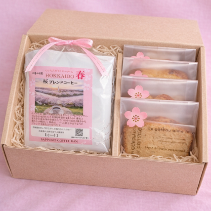 オンラインショップ限定 期間限定販売の桜のギフト 桜ブレンドカップオンカフェ6パックと 桜パウンドケーキ4個をセットにしました