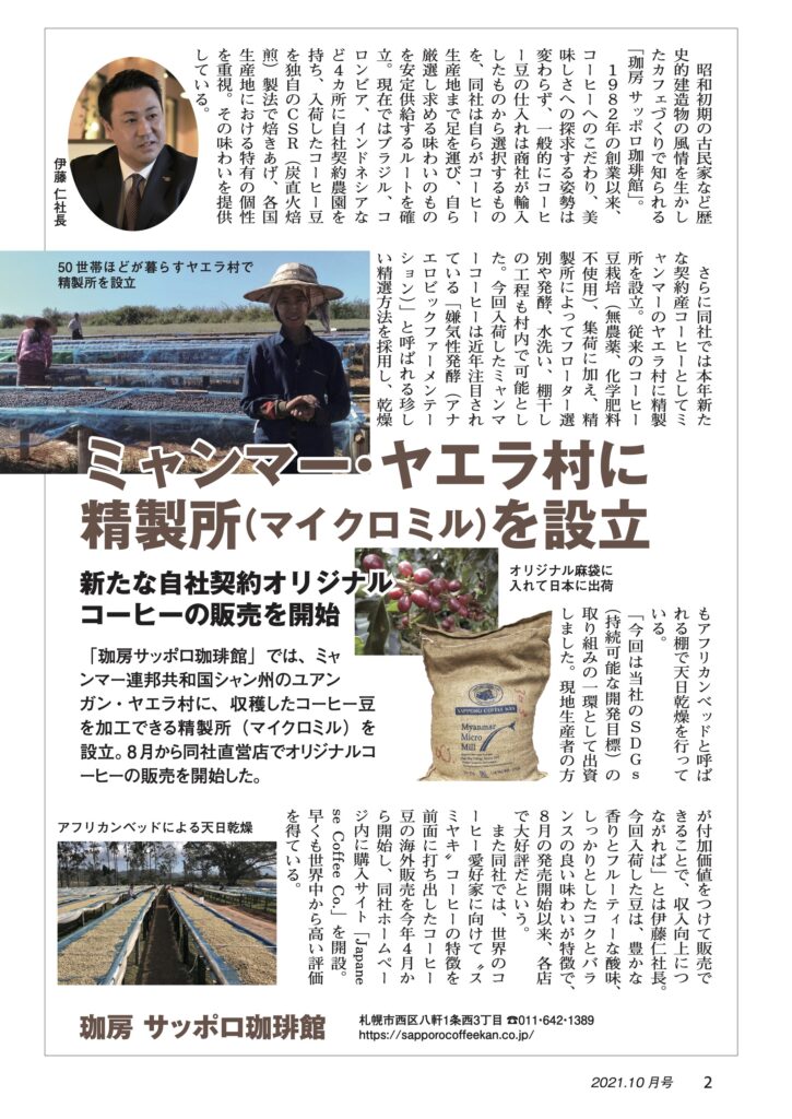 今回サッポロ珈琲館が出資してマイクロミル(精製所)を作り上げました。