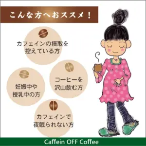 カフェインに弱い方、妊産婦、授乳期の方、カフェインを控えなければならない方等カフェインを気にせず珈琲専門店の味わいを充分にお楽しみいただけます。